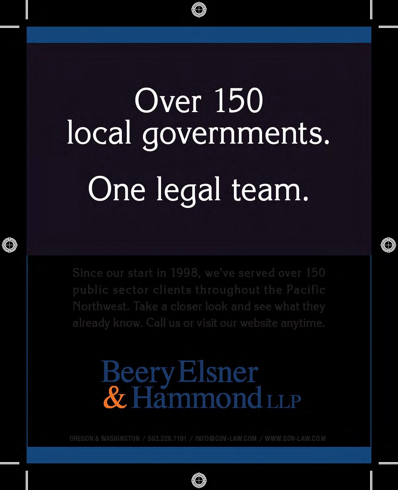 • Educates homeowners about their service line responsibilities • Provides solutions that help address aging residential infrastructure • Offers affordable plans to protect homeowners from the high cost of service line repairs • No cost to the city Educating residents together. Contact: Dennis Lyon • Regional Director Dennis.Lyon@HomeServeUSA.com 412-266-9545 • www.servicelinepartner.com Did you know? • Over 240,000 water main breaks occur each year in the U.S.* • 78% of homeowners surveyed believe their municipality should educate them on repairs and preventative measures** NLC Service Line Warranty Program: Join the more than 850 partners that have chosen to work with us to help protect their homeowners. * https://www.infrastructurereportcard.org ** 2017 IPSOS Survey of HomeServe policyholders and non-policyholders 4 | Third Quarter 2023 www.orcities.org Non-member subscription rate: $96 per year Published articles and views expressed in Local Focus do not reflect any direct or implied endorsement by the League of Oregon Cities unless specifically stated as such. Publication of any advertisement should not be considered an endorsement of the product or service involved.
