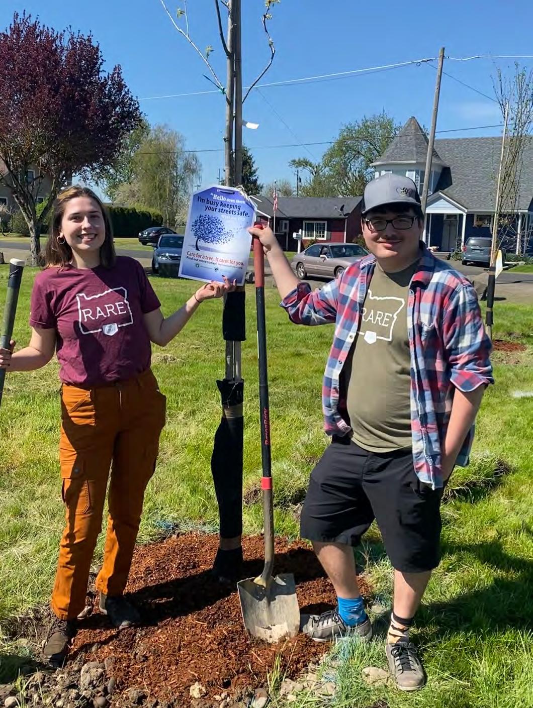 Resource Assistance for Rural Environments (RARE) program participants Julia Fox and Chris Rivera helped Halsey achieve Tree City USA status.