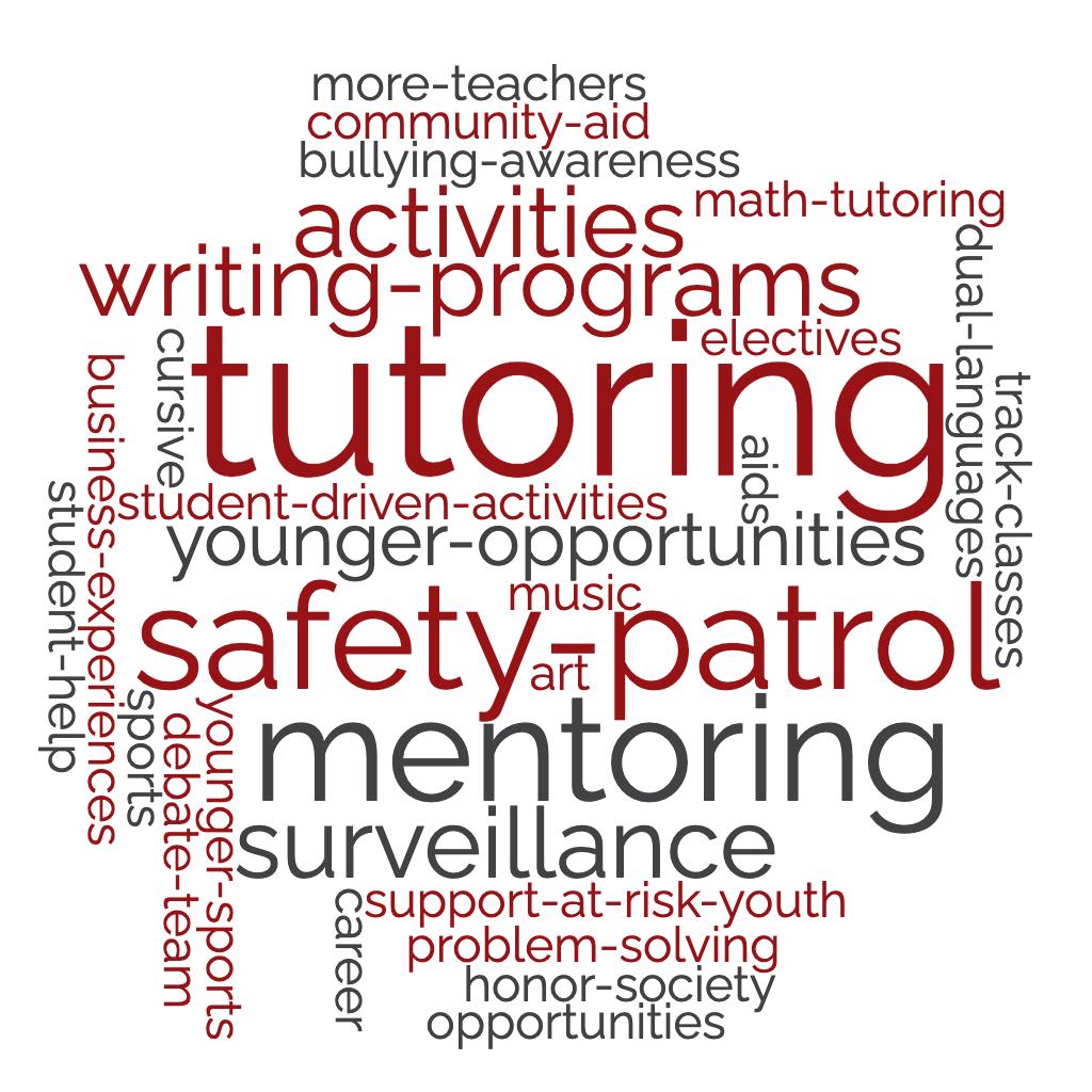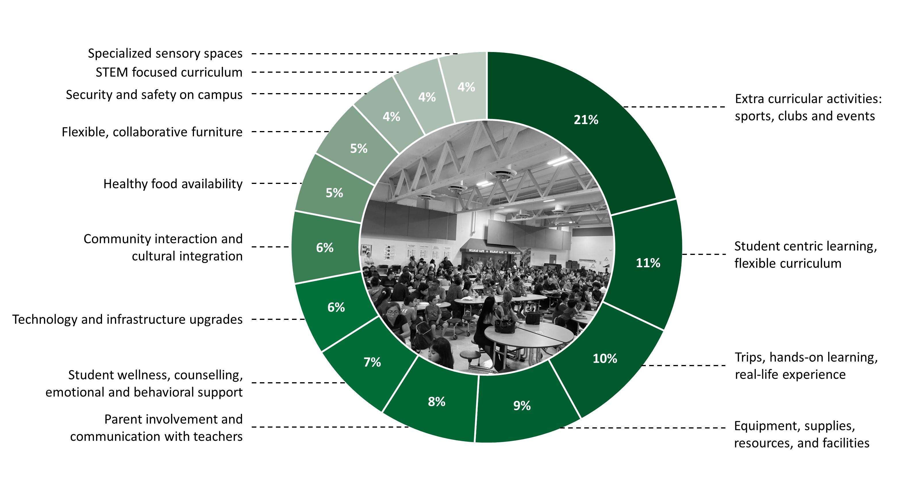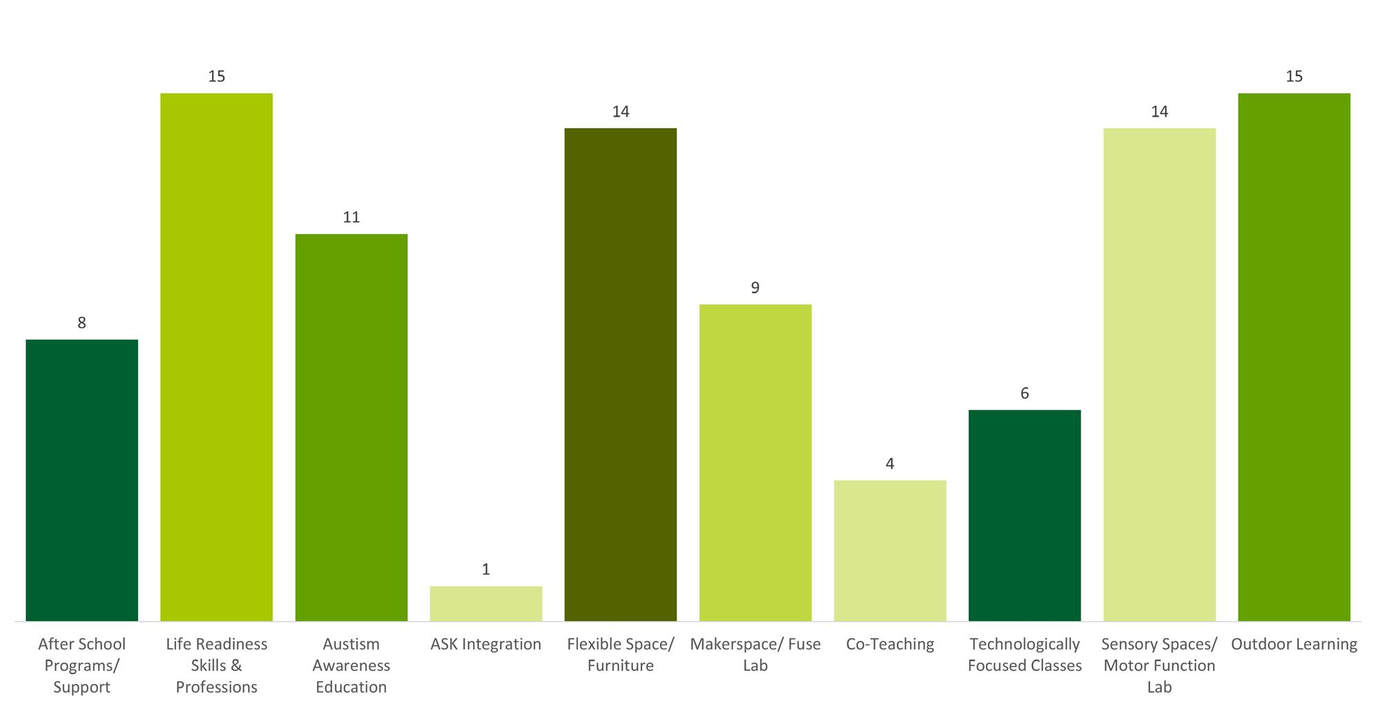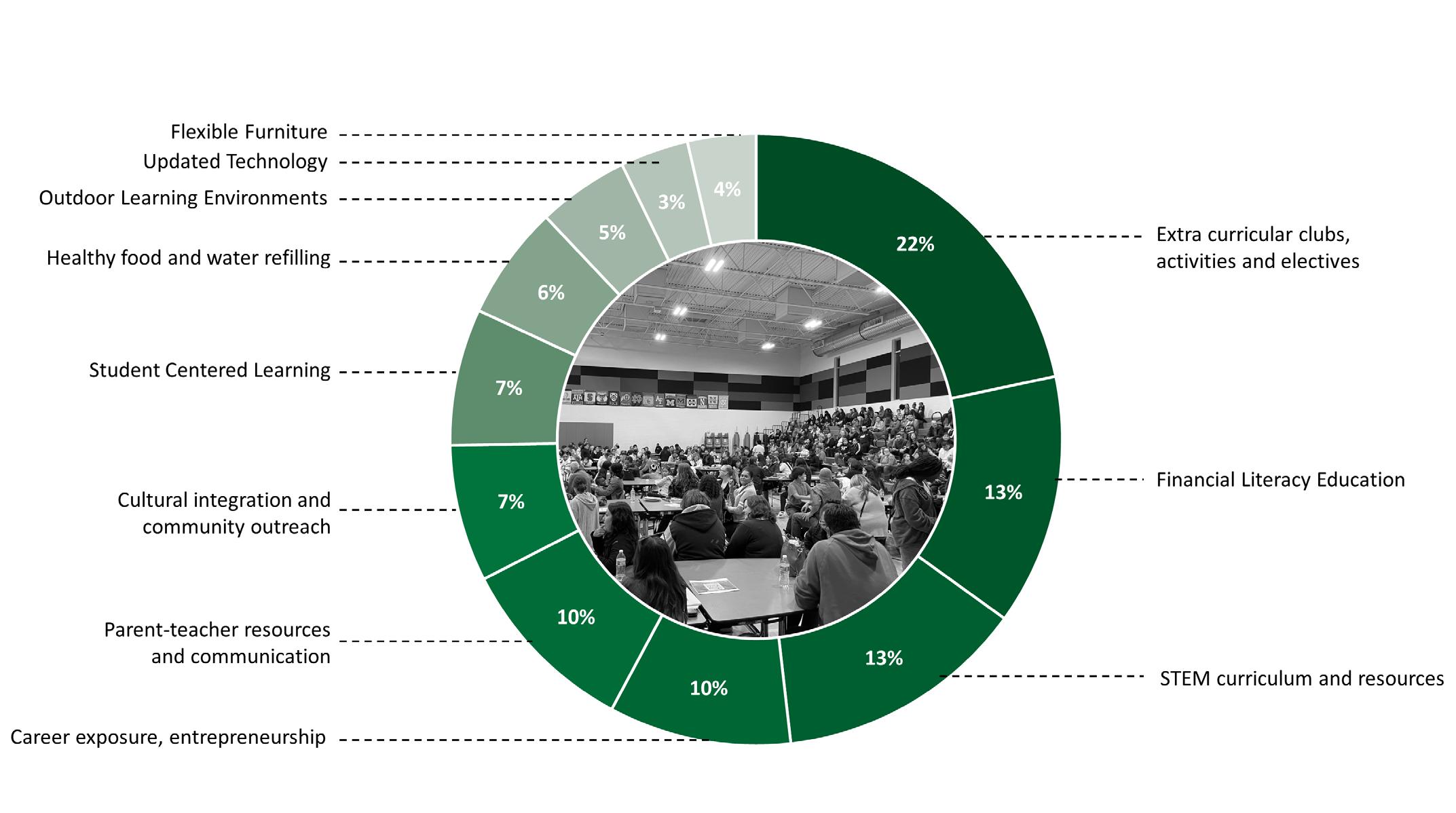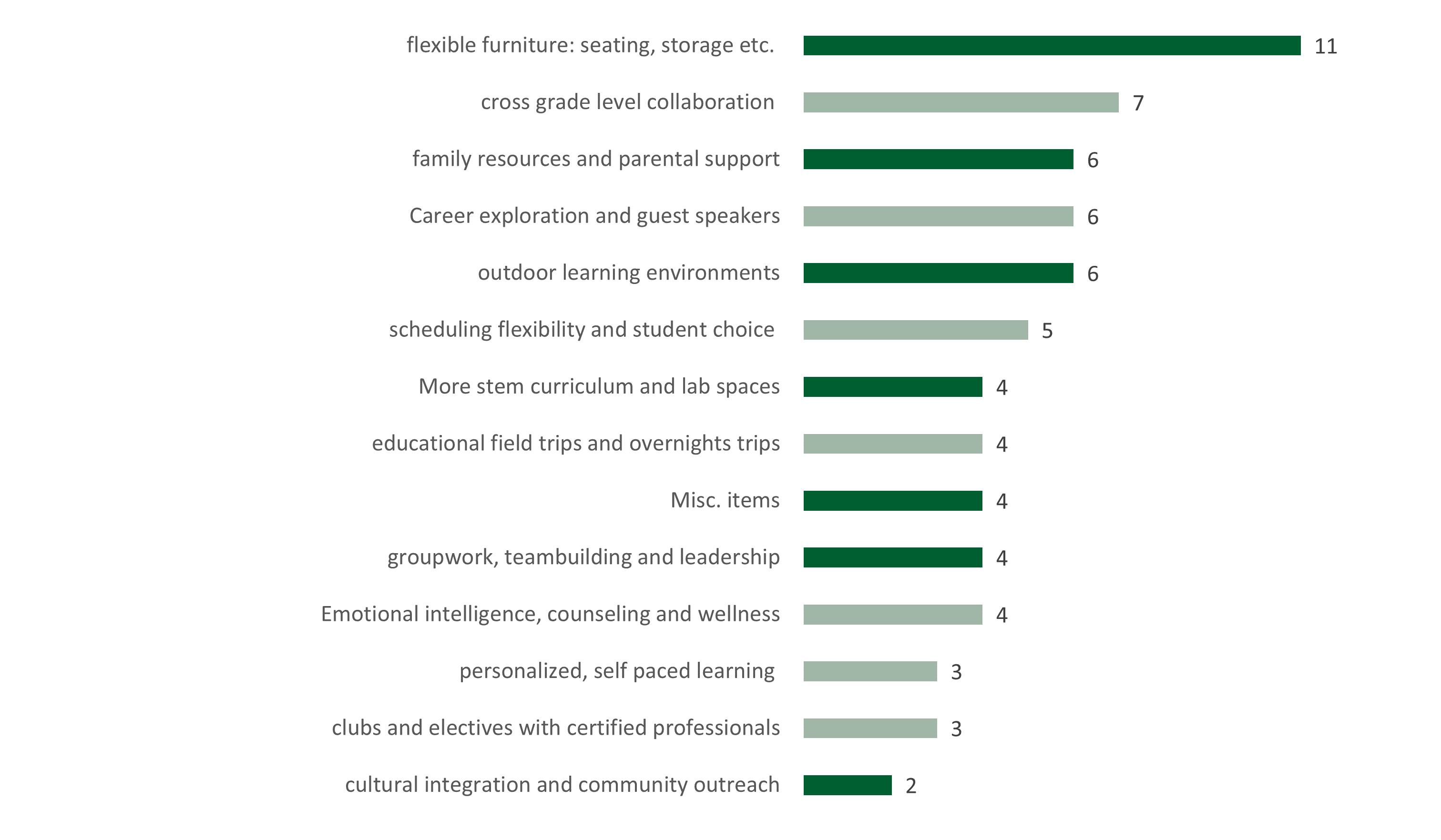 Hygiene/Supervision Support for Spanish Speakers Learner Support/ Guidance Parent Engagement Group Work/ Collaboration Cross -Curricular Projects After-School Projects STEM Subject - Focused Spaces/Programs Outdoor/Learning Space and Infrstructure Health & Safety Field Trips, Career Exploration and Life Experience 2023 Pendergast Educational Visioning Report 128