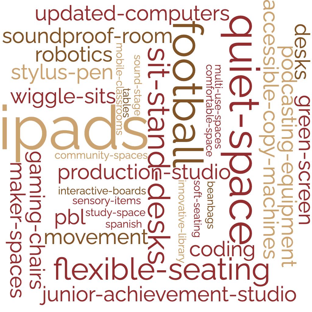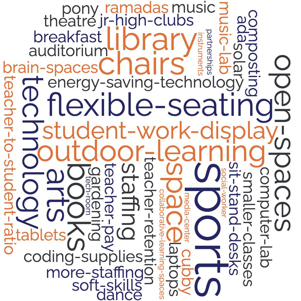 There is a desire for flexible spaces and furniture, which would allow for higher levels of collaboration between classmates, teachers, and across grade levels. Collaborative spaces are appropriate for project-based learning modules.