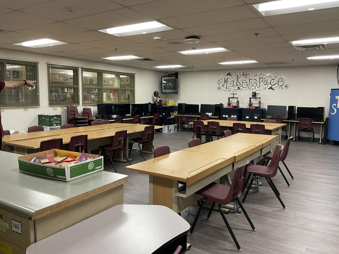 Replacing a wall with a glass partition could provide the visibility needed to increase use of this makerspace.