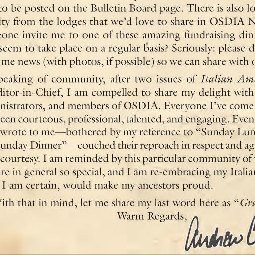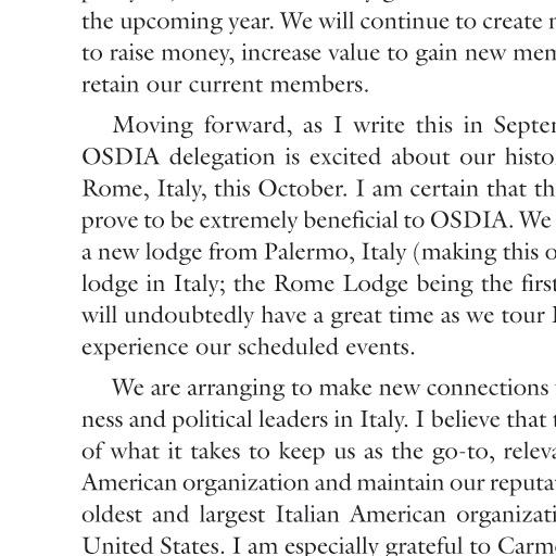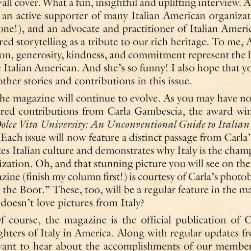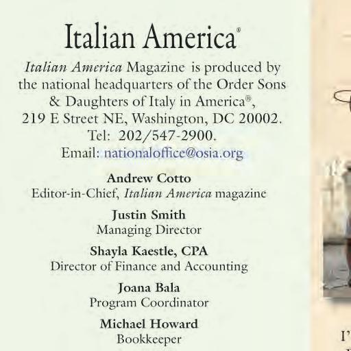 Italian America magazine is the most widely read magazine in the United States for men and women of Italian heritage. It is the official publication of the Order Sons and Daughters of Italy in America (OSDIA), which was founded in 1905 and stands as the oldest and largest organization for Italian Americans. Italian America is a glossy, full-color, 40-page magazine published quarterly. It offers features and articles on Italian and Italian-American current events, history, culture, travel, language, recipes, literature, and more.