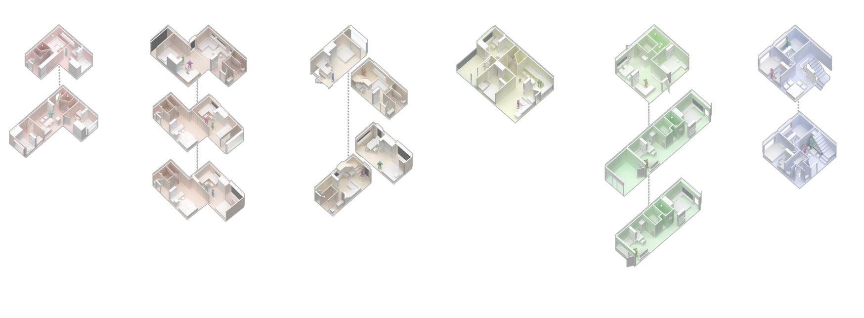 we make our programming according to our anylasis about how the need of renting houses differs by ages which help us to decide the housing types ratio. 4 classes of units are designed according to the programming for our different age level: Youth, Family, Elderly and Workers. We keep our intention which is to balance cost and quality during the design process. There are 13 types of units severed different people and several units will be organized as a subgroup with sharing spaces like living rooms, kitchens or courtyards.