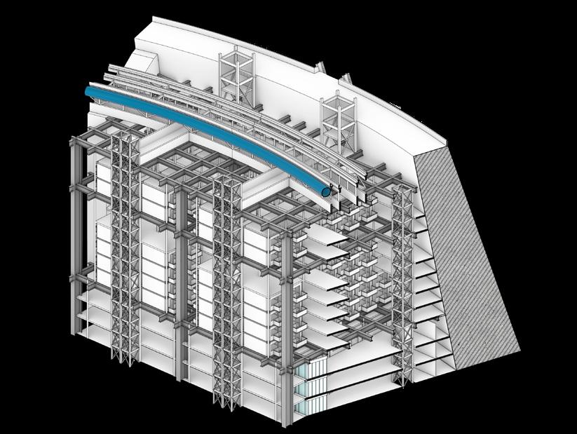 Putting circulation core and the floor of public space in the steel frame.