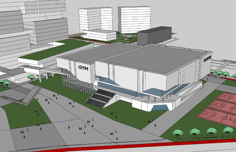 Connecting different blocks on forth floor with a jogging path, which provid people a space to do some exercise. other space on this floor can be used for other types of exercise like table tennis or leisure activities. In the future, more residential units can be added in this floor if needed due to the advantage of prefabircation.