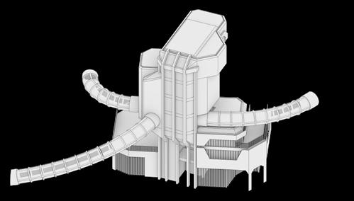 This part include several studios and chatting space for toys designer. Three tubular corridors connect it with two factory parts and the leisure part.