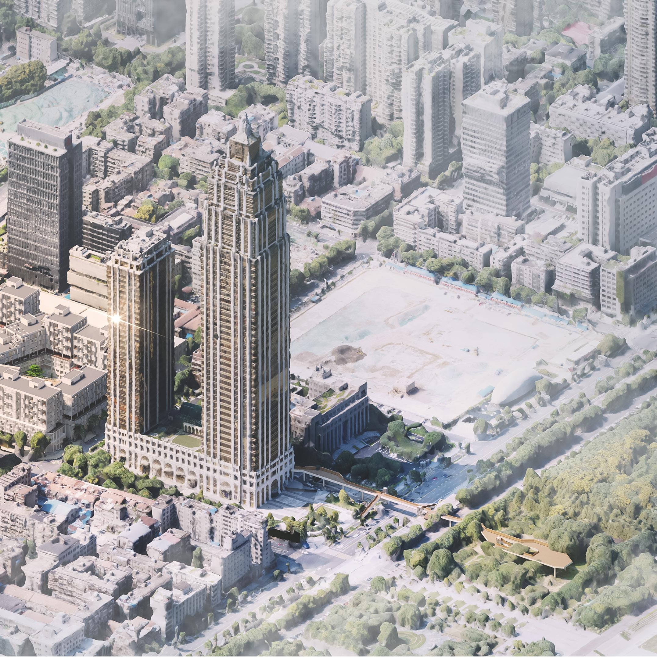 In the general plan, we took into account the location of the bus station and subway station near our site and the important attraction of the river beach green belt. So we set up a leisure square open to the public, and determined the connection position of the pedestrian bridge. This safe and convenient pedestrian bridge replaces the driveway with many underground garage entrances below it.