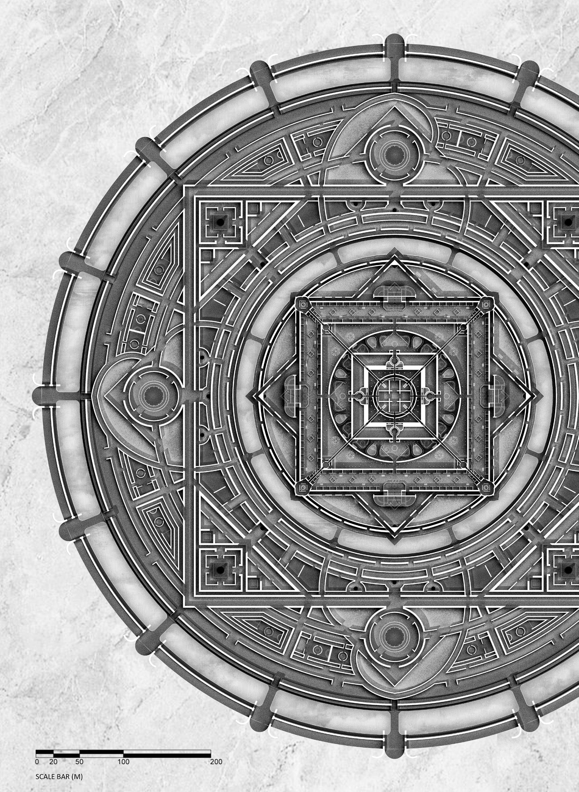 The spiritual meaning and typology of mandala give me an inspiration of the organization of the sky burial platform and other minor spaces - a centripetal space surrounded by layers, which can improve the sanctity of the core