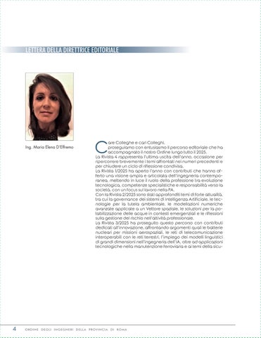 Professional Engineers Registration Board of Rome Maria Elena D'Effremo - Direttore Editoriale dal Luglio 2022 Francesco Marinuzzi - Già Direttore Editoriale dall'inizio fino al Giugno 2022 Ingmarinuzzi@gmail.com