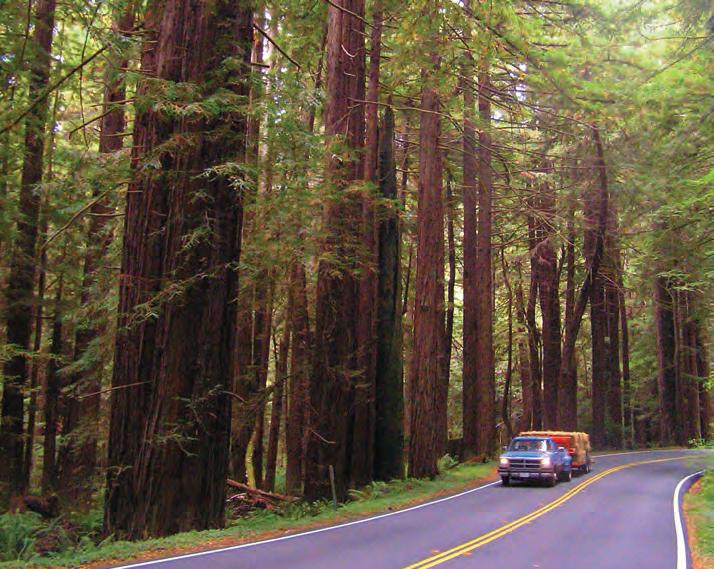 In southern Humboldt, Hwy 101 and nearby roads pass near some of the fi nest specimens of old-growth redwoods in the world. From Redcrest south to Phillipsville, motorists can detour along the renowned Avenue of the Giants, a 31-mile stretch of two-lane road that parallels Hwy 101 and winds through stands of huge redwoods along the Eel River.