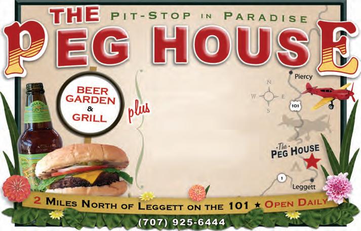 WHERE: 2 miles north of Leggett on Hwy 101. MORE INFO: 707-925-6444, ThePegHouse.com