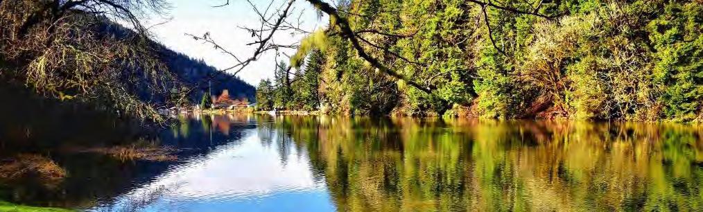 The McKenzie begins its decent, rumbling and tumbling its way westward through the lush green foothills of the Cascade Mountains and picturesque Willamette National Forest. Cutting its way through heavily forested canyons, the river slows briefly as if to enjoy the beauty it helped to create at Clear Lake. The crystal clear, blue McKenzie continues its journey westward, cascading through pure stands of Douglas fir and western red cedar, mixed in with white alder and big leaf maple along the banks.