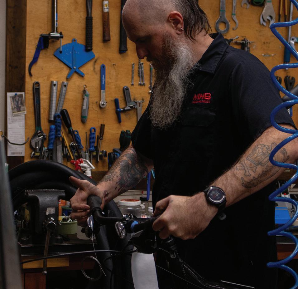 (ON THE COVER, LEFT ) Jeff Reynolds, general manager and partner-owner of Bicycle Way of Life fixes a bike at the downtown location. Bicycle Way of Life, located in Eugene, Ore., sells and services bikes, with some rentals also available.