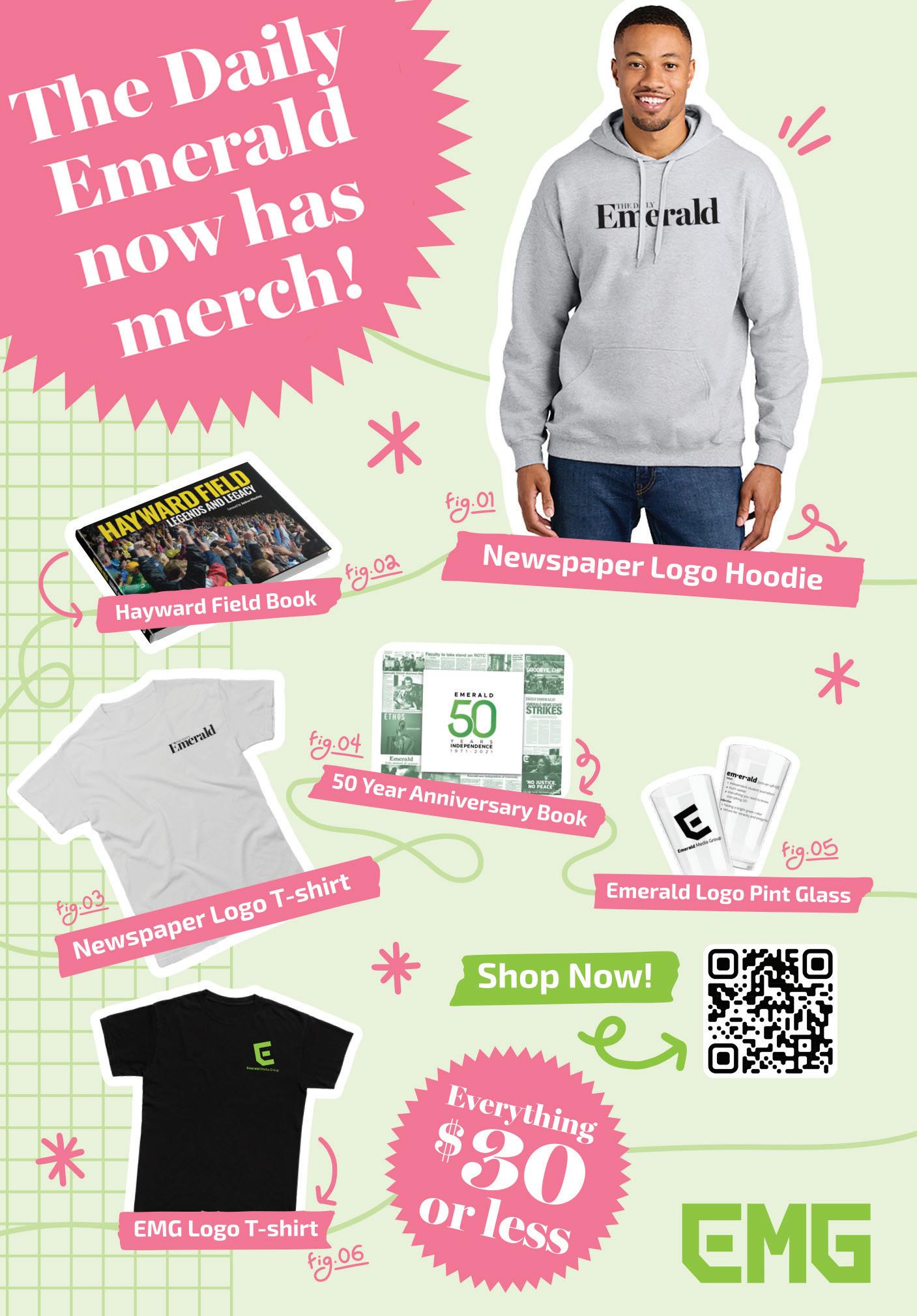 The Daily Emerald is published by Emerald Media Group, Inc., the independent nonprofit media company at the University of Oregon. Formerly the Oregon Daily Emerald, the news organization was founded in 1900.