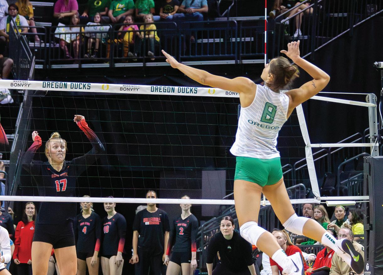 Vaulet tallied 19 total kills in the Ducks’ win over Iowa, including two during the three-point Oregon run that ended the match. She then followed up her stellar performance with an 8 point showing in the Ducks’ 3-0 win over Ohio State.
