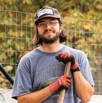 ( ABOVE) Valentine Bentz, a helper at the Grove Garden, works on clearing the ground and planting native in-ground plants to prepare for the winter in, Eugene, Ore. on Oct. 8, 2025.