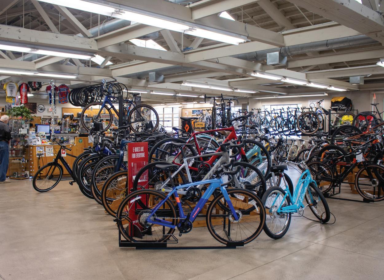 ( ABOVE) Bicycle Way of Life, located in Eugene, Ore., sells and services bikes, with some rentals also available.