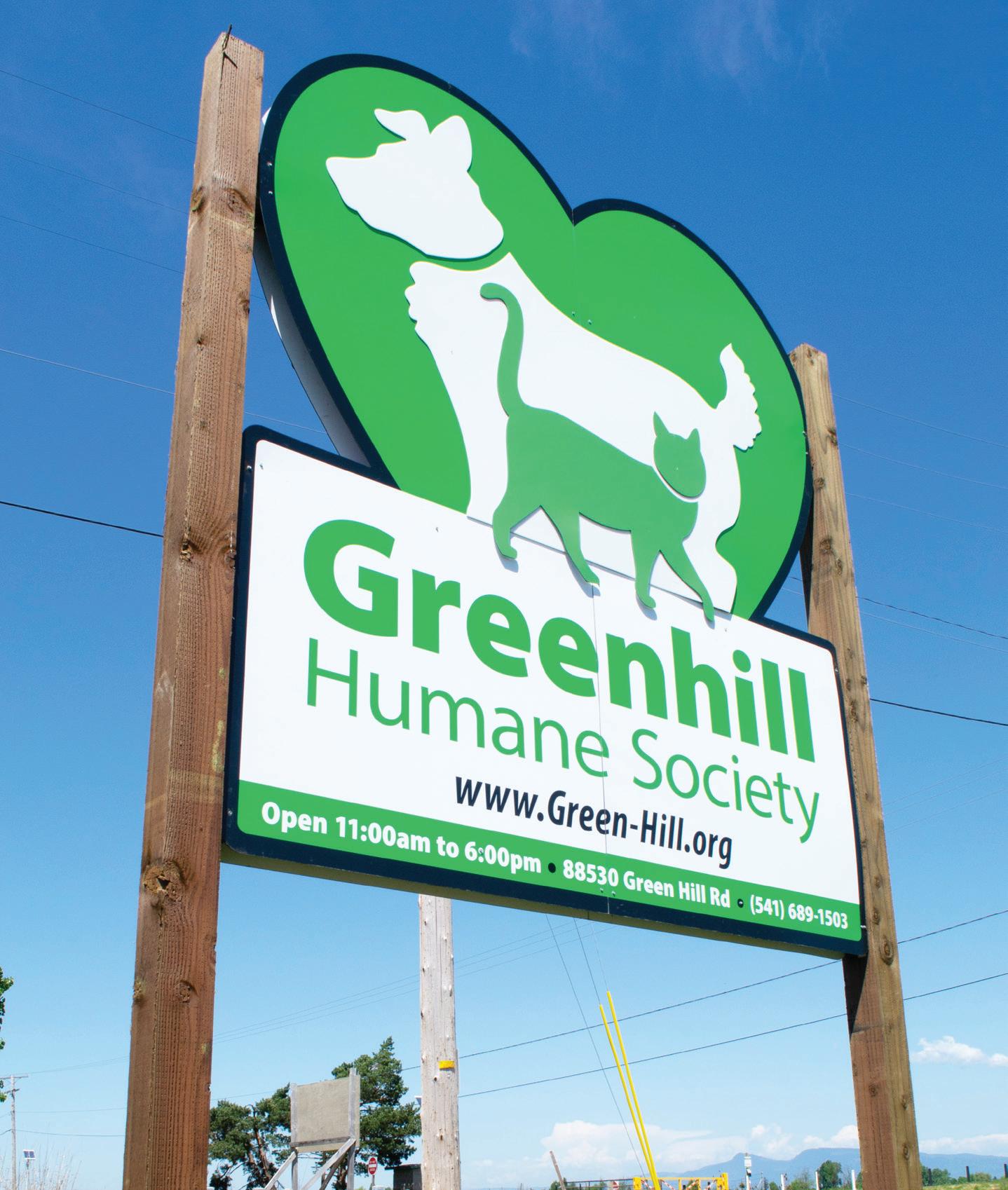 Greenhill Humane Society is an animal protection organization in Eugene. Its operations include animal adoptions, taking care of stray animals, crisis care boarding for animals in danger and other animal healthcare needs.