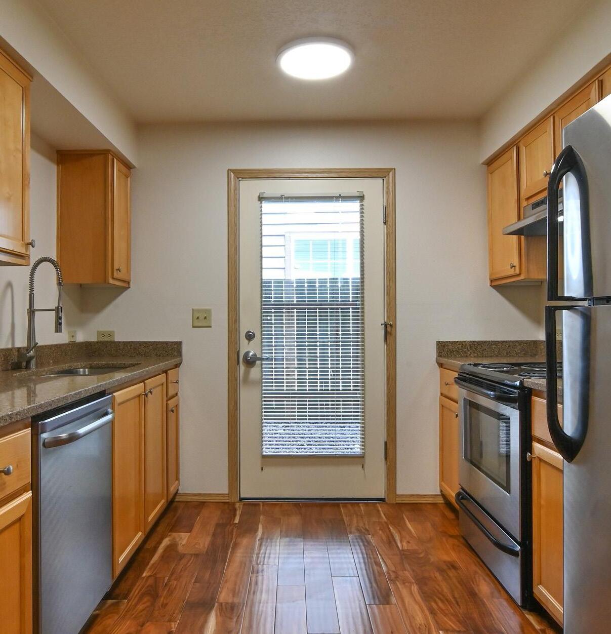 Each unit has in-unit laundry, newer kitchen appliances, built-in microwave and dishwasher, and plenty of cabinet space. Select units have built-in desks and private back patios.
