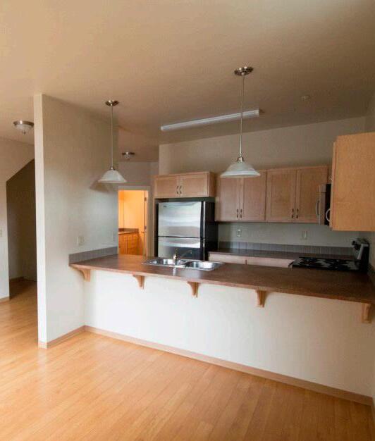 This 3-story town home has a large laundry room complete with a washer and dryer and HD antenna! Private deck off of the very spacious kitchen and large dining room. 3 bedrooms and 2 baths and plenty of room in between! Extra insulation between the apartments provides a peaceful space for each unit. Bicycle parking cages provided. Water/ sewer/garbage included. Cosigner accepted in lieu of income.