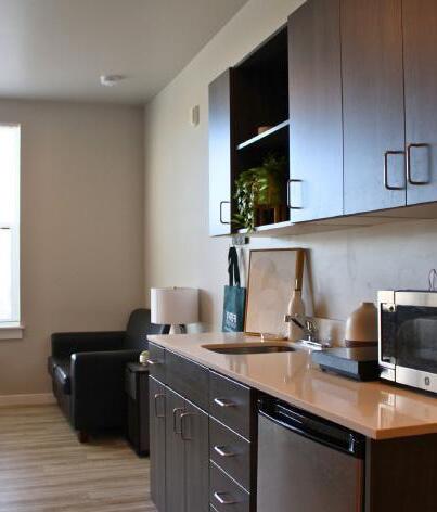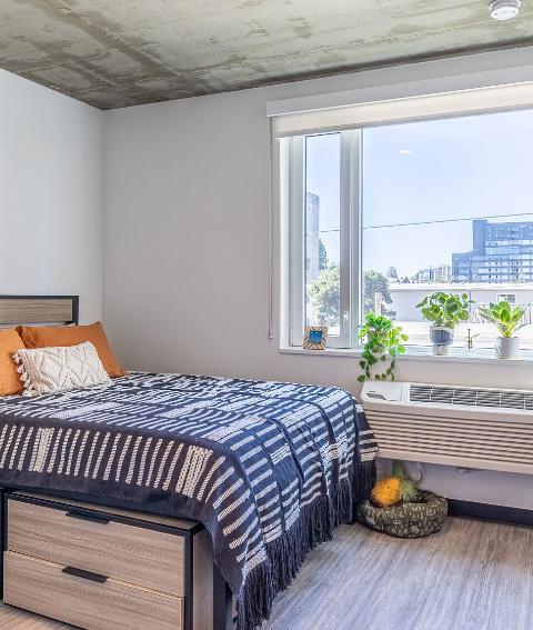 Residents will enjoy a fully furnished living space with private bathrooms and a kitchenette in each unit. Each room includes a microwave, minirefrigerator and kitchen sink. Free fiber-optic Wi-Fi is provided to all tenants. Community amenities include our rooftop deck with seating area and grills, secure package room, card operated laundry facilities, large kitchen spaces, first come first serve parking and gated bike storage. Experience our modern living right in the heart of Eugene!