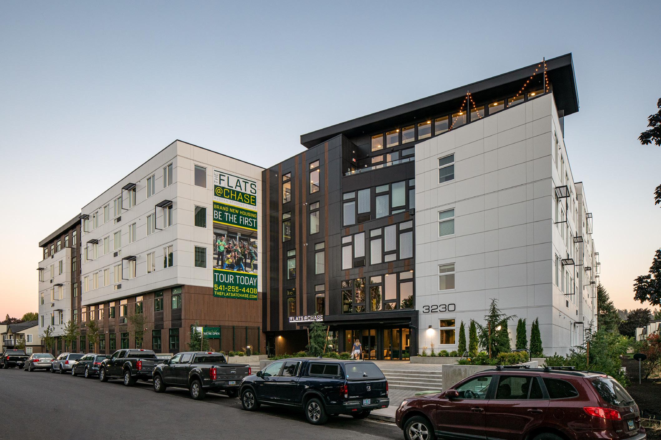 Located at the epicenter of the University of Oregon campus, on the corner of 18th Avenue and University Street.. The 20-unit residential living complex rises five stories, providing majestic views of the beloved McArthur Court and Hayward Field. Ideal for campus living, The Prefontaine offers 3 and 4 bedroom units featuring state-of-the art appliances, generous room sizes, and spacious floor plans. Additional features like the rooftop terrace provides a living space and a sense of community that make residing at The Prefontaine so much more than a “place to live.”