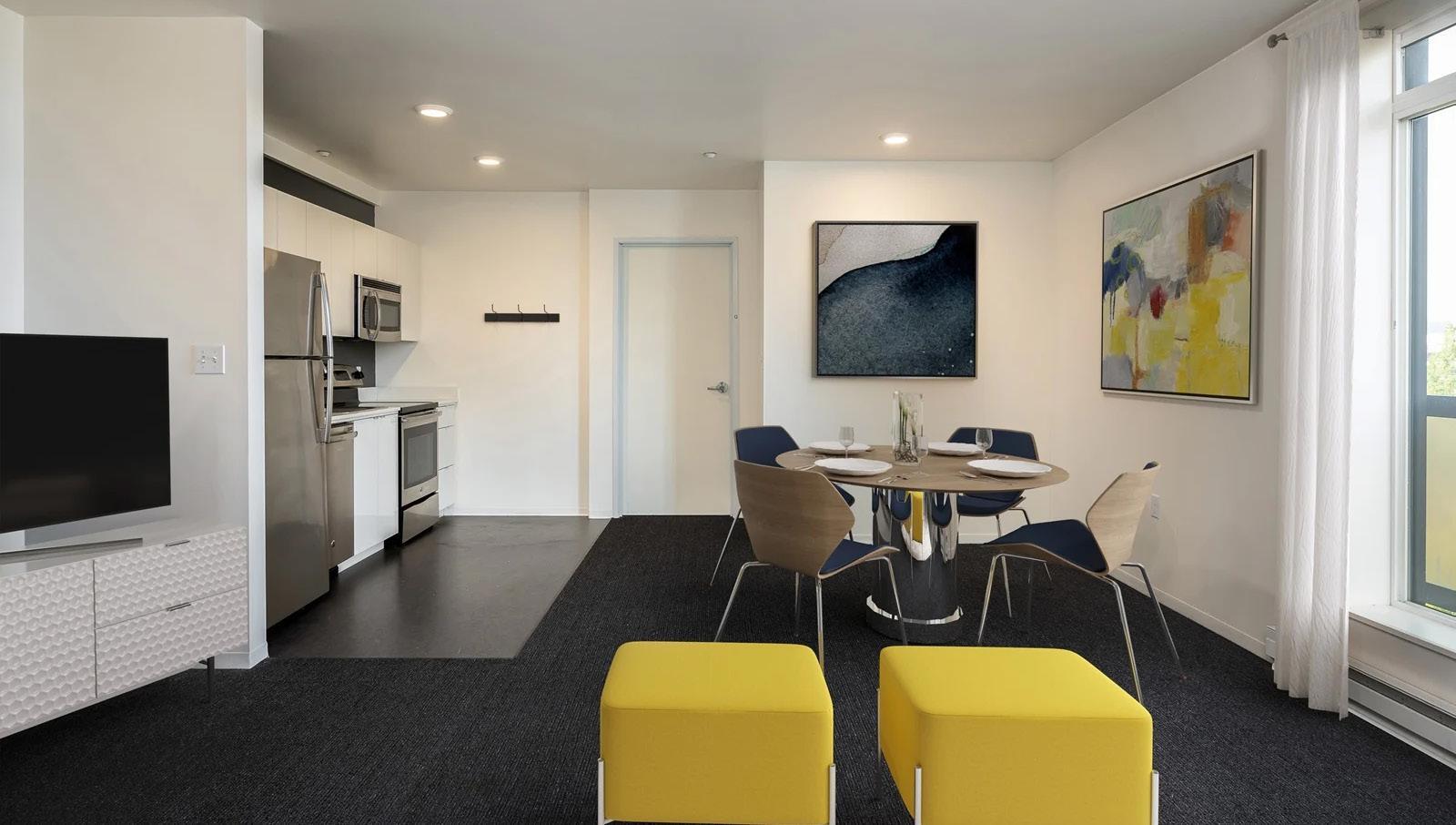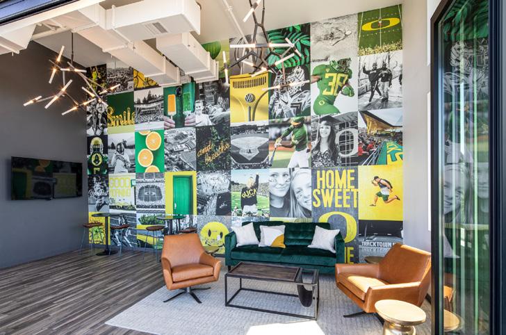 Our UO apartments are a stone’s throw from the library, classes and 13th street. All with a seriously styled apartment to come home to. Designed by the architects who created the Jacqua Center, with modern looks, polished interiors, sparkling appliances, great gathering spaces, an organic outdoor courtyard/sitting lawn, covered parking, bike storage and fiber-optic Ethernet and WiFi in every apartment.