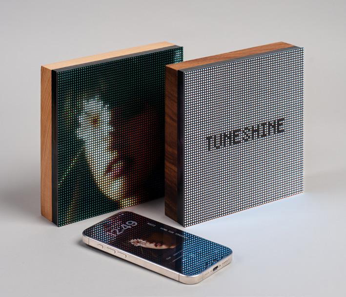 TUNESHINE. Tuneshine is an LED display that brings album art to life in real time, synced with whatever music is playing. Whether kids are wearing headphones on the couch or turning up the volume in the kitchen, it adds a whole new sensory layer to the listening experience. It connects to your streaming service (Spotify, Apple Music, etc.), identifies the track, and instantly displays the album art in a minimalist, handcrafted wood case. tuneshine.rocks
