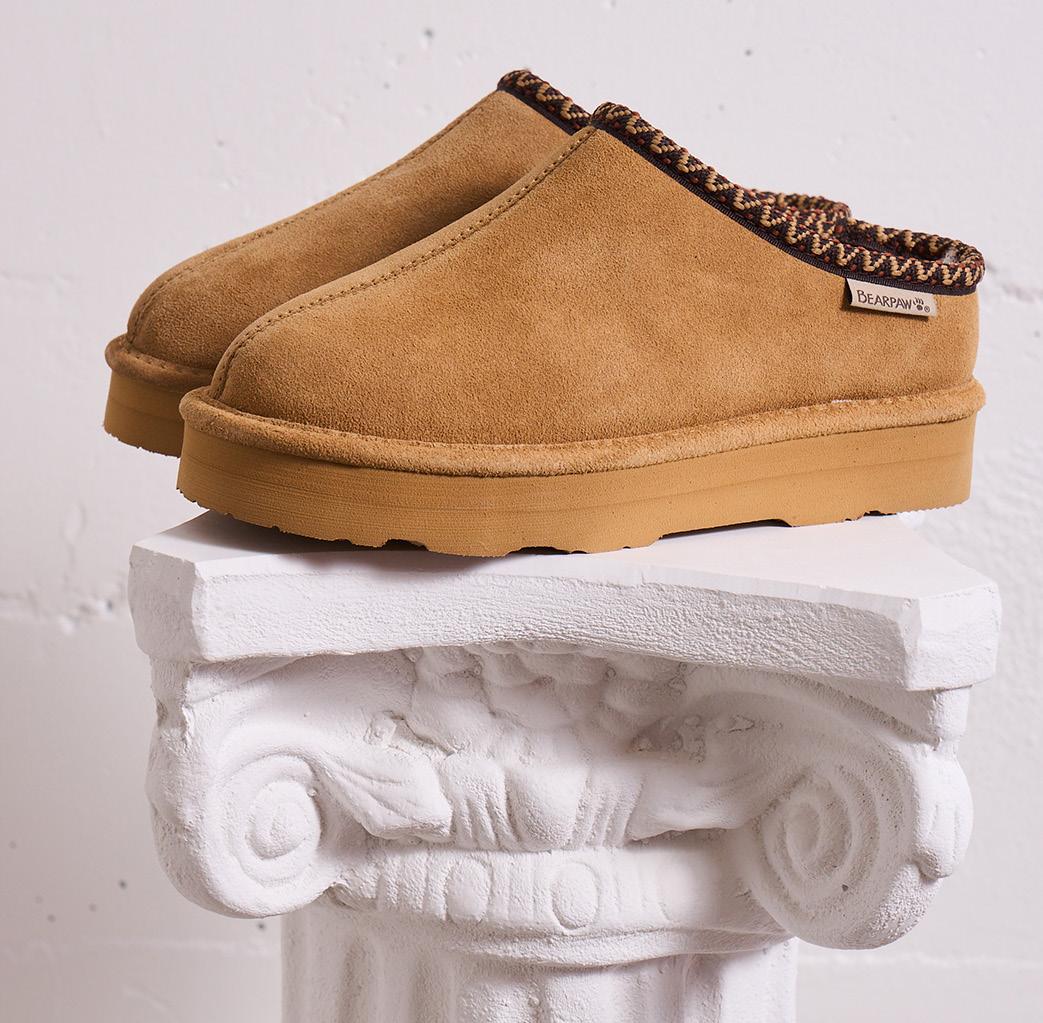 BEAR PAW SLIPPERS. The Izzy Platform Lo slippers from are plush, supportive, and cozy in a way that makes you want to keep them on all day. The platform sole gives them a more substantial feel than typical slippers,
