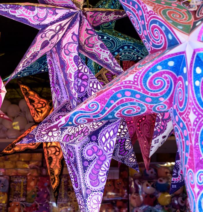 In INDIA Christmas is celebrated on December 25th with church services for believers. A midnight service is very popular. People of all faiths decorate their homes and gardens with star-shaped paper lanterns, and some set up nativity scenes. Father Christmas is the one who brings presents to children from a horse and cart. Special Christmas cakes and sweets such as newries and kulkuls are baked and open houses abound.