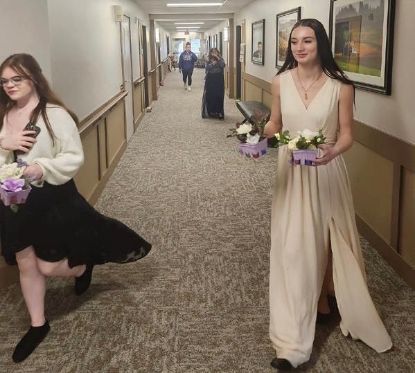 After the formal event, Rainbow members and adults delivered small flower arrangements to every resident of Jennings McCall. These arrangements were a project at the recent Camp SAS weekend. Oregon Rainbow loves their grandparents!