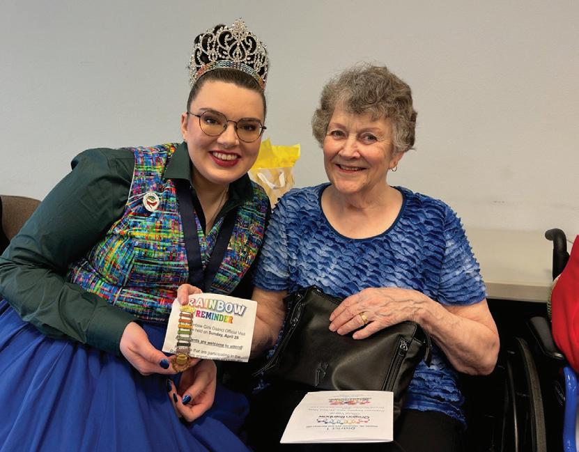 Oregon Rainbow has ‘adopted’ grandparents at JMC for years, and since COVID restrictions are gone, an in-person visit sounded wonderful. It was a busy Rainbow day with programs honoring the Rainbow grandparents, reports about Rainbow in other states, Supreme assignments and officer announcements, Grand Cross of Color recipients, and it all ended with an initiation where four new members joined Rainbow for the fi rst time.