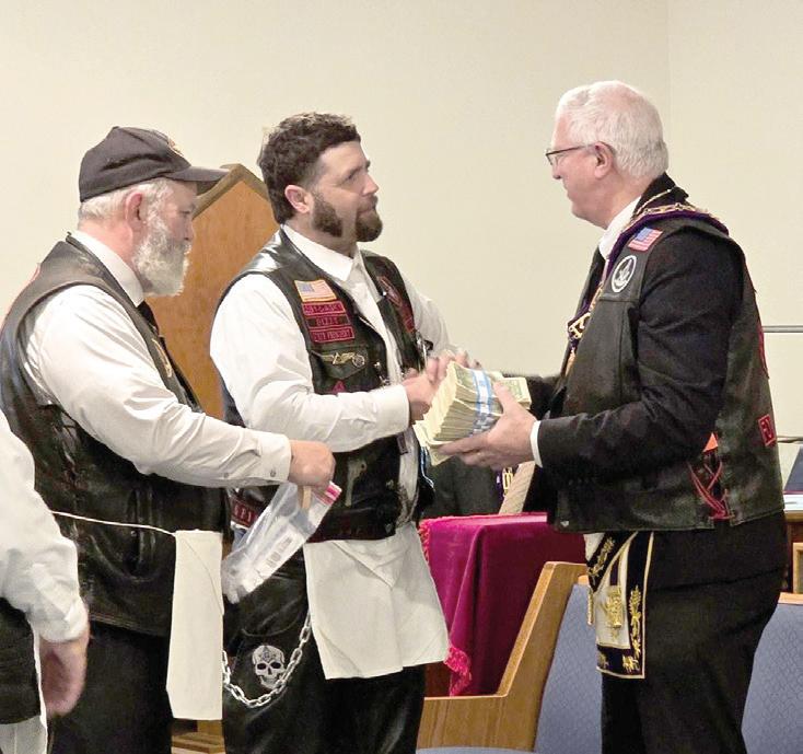Afterward, the Grand Chapter of Widow Sons, led by Brother Jason “Dizzy” D. Lavery, presented M.W.B. Marc L. Strong with a vest as an honorary member of the organization. In addition, they donated $1,000 to support the Grand Master's chosen charity. This presentation was made possible through the combined efforts of the Eastwind, Hiram, and Sojourner Chapters.