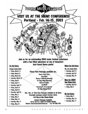 there are two opportunities for music educators to learn about recent research findings in our profession. First, the MENC Northwest Division Conference in Portland, February 14-16, 2003, will feature a Research Poster Session, with 16 recent studies completed in several locations throughout the United States. Second, research that was done by graduate students at the University of Oregon is being made available to the readership of the Oregon Music Educator and is detailed in the second half of this article.