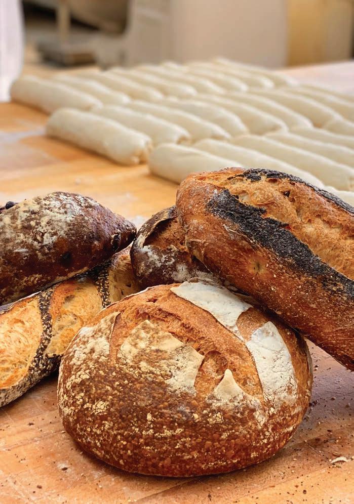 sourdough, owners Gloria and Spencer Hamiga are dedicated to the overall enjoyment of the customer experience, and it shows. “People come to Sisters to have a good time, and we operate a fun, upbeat, engaging family environment,” Hamiga said. To Sisters’ bakers, creating their flagship sourdough is a source of pride. “What is special about our bread is the simplicity of the ingredients: flour, sea salt and water,” explained General Manager Macon Luhning, “But what makes it so complex and intriguing is the craft behind it, the mixing, the shaping, the fermentation; it’s the human hands that make it what it is.” Eager to share their love of bread-making, the staff is happy to send customers home with a portion of their signature sourdough starter. Sisters Bakery is an old-school Grandma’s bakery done right.