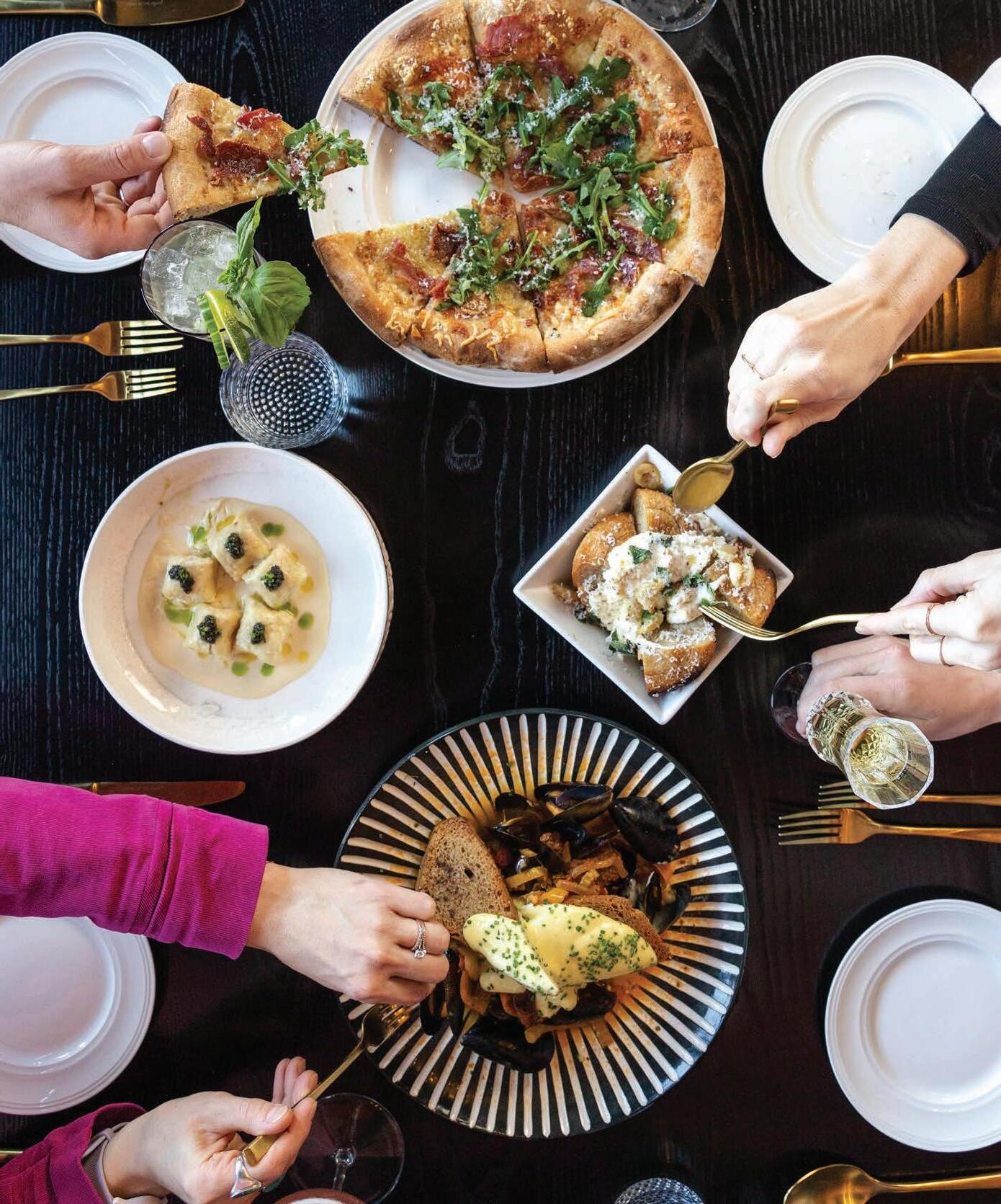 One of Bend’s newer Italian eateries from the renowned team at Sixtop Restaurant Group, Nome has gained a reputation for its classic menu with a modern twist, an elevated and vibrant atmosphere, and loyal clientele. “We wanted to create a space with an energy and buzz that you can feel the moment you walk in,” said Nic Peterson, Nome’s general manager, who achieved his vision in the lively, chic dining room and passionate team of staff, ready to welcome patrons with enthusiasm and cheer. At Nome, diners are transported to the Tuscan countryside with a rotating menu of classic Italian dishes, including wood-fired pizzas, pasta, salads and regional entrees. The reginette, a wild boar ragù tossed in San Marzano tomato sauce, topped with chili flakes and romano cheese, has been a crowdpleaser since it first debuted. Another standout is the bucatini, a rendition of Cacio e Pepe, featuring lion’s mane mushrooms, Pecorino Romano and cracked Tellicherry peppercorns. Be sure to ask the server for a recommendation from Nome’s extensive and diverse Italian wine list for pairing with the meal. Recently, Nome began lunch service on select days of the week, serving their signature appetizers, salads, pizzas and new wood-fired sandwiches so guests can enjoy midday culinary delights. “We are incredibly grateful for the warm welcome we have received from the Bend community, and are excited to continue bringing the Italian food our customers crave,” said Peterson.