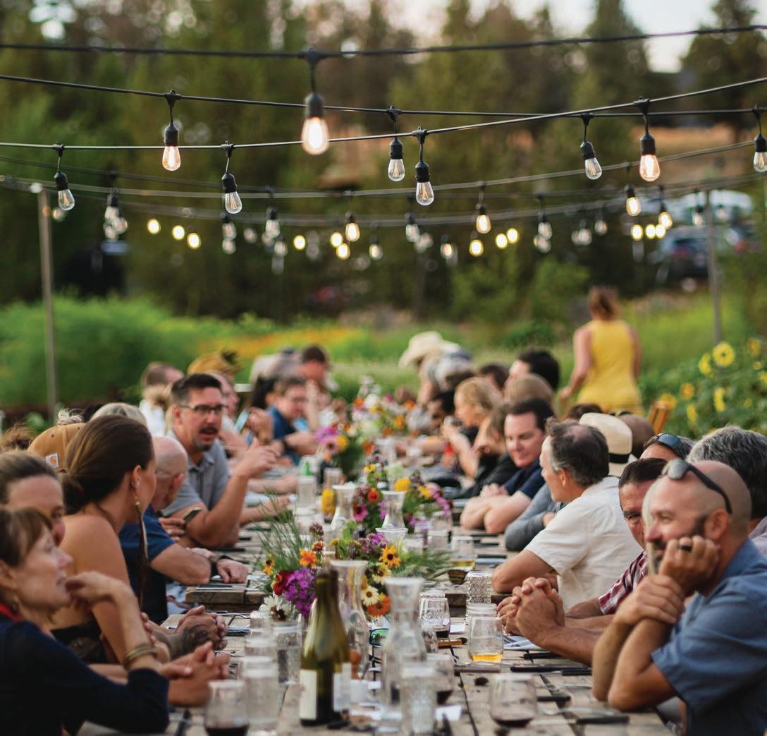 holds a diverse collection of ticketed events year-round. From October to April, meals are held on the deck within a greenhouse enclosure and heaters. Dinner is served on live-edge tables made of juniper wood found on-site. In the summertime, dinners may be held in the garden, offering an immersive experience, or on the deck, with views of Smith Rock. Diners are served family-style on an outdoor long table with up to 50 guests.