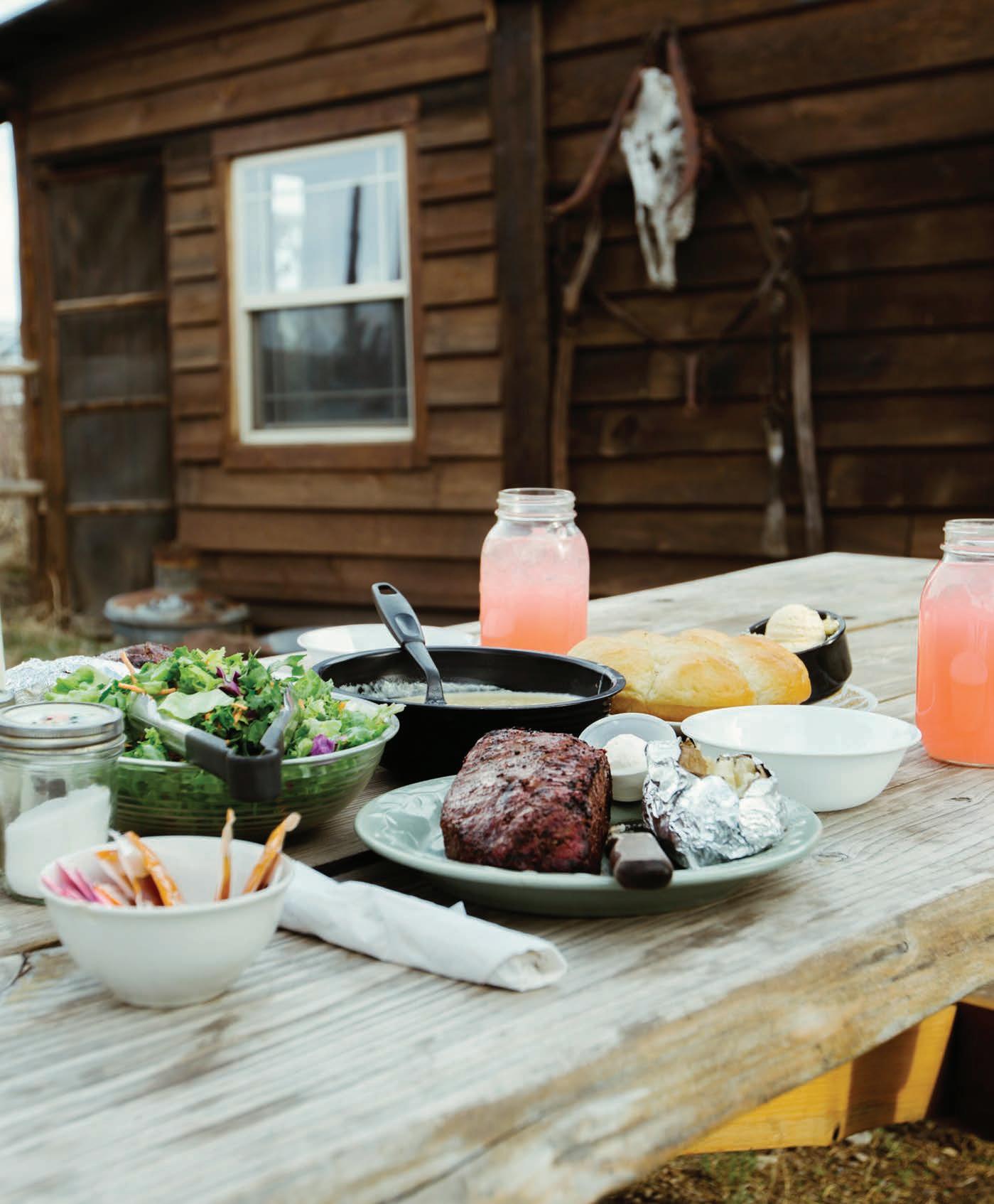 booking one of the cabins on the property to stay overnight after their journey to Silver Lake. On the menu, diners can choose a whole roasted chicken or a Cowboy Cut top sirloin, complemented by a variety of side dishes, including hearty soup and old-fashioned sweet yeast rolls. Of the dessert favorites, the fresh marionberry and strawberry shortcake is the tried and true. “There’s really no recipe written down,” Roscoe said, adding that the menu has remained pretty consistent since 1992. “The authenticity is what people enjoy,” she said. “There’s nothing like it anywhere.”