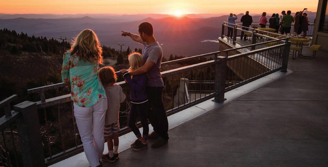 During the summer months, from June until Labor Day Weekend, Mt. Bachelor offers sunset dinners at Pine Marten Lodge, which sits at an elevation of 7,775 feet. Guests ride the chairlift to the lodge and enjoy an elevated meal while taking in panoramic views of the surrounding Cascade Range. “Guests get to witness the sunset from the top of a mountain, which is quite an extraordinary experience,” said Brianna Batson, director of food and beverage at Mt. Bachelor.