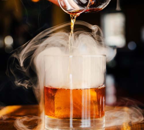 Cherry bitters, dark cherry juice, Bulleit, orange peel, smoked with cherry wood
