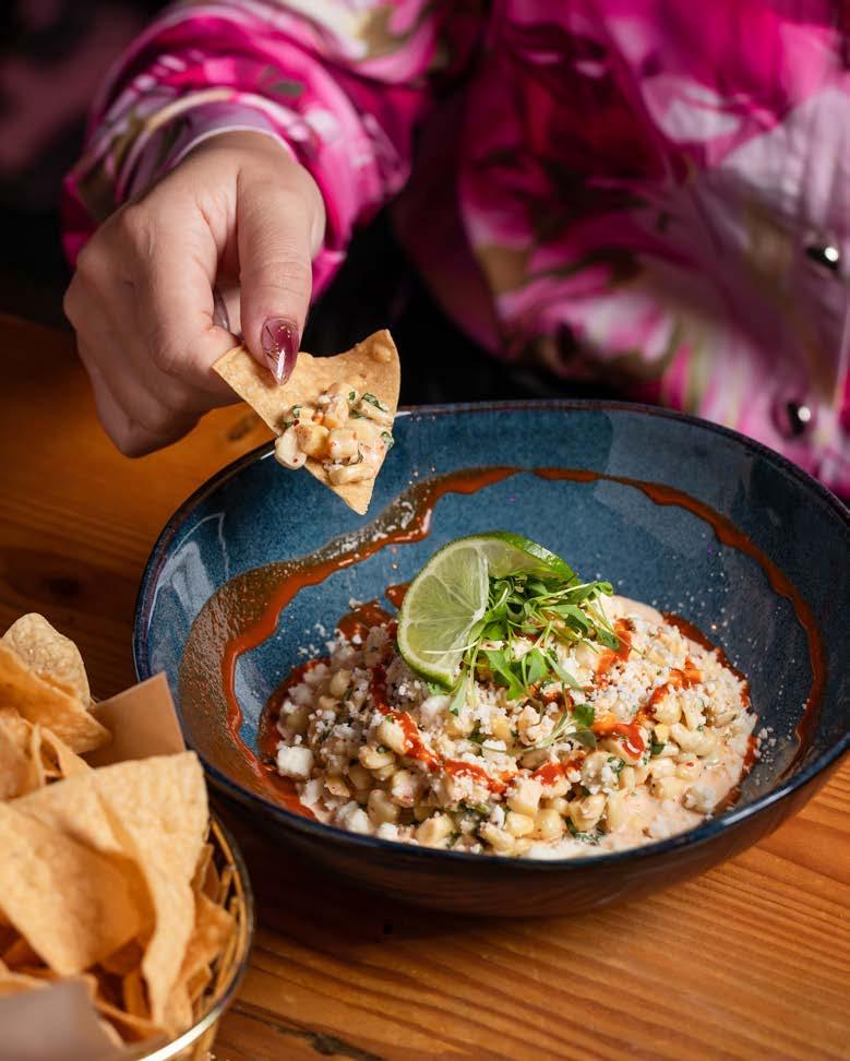 Cheese-encrusted tortillas filled with coconut hand-battered prawns, deep-fried and topped with house sauce and fresh mango salsa