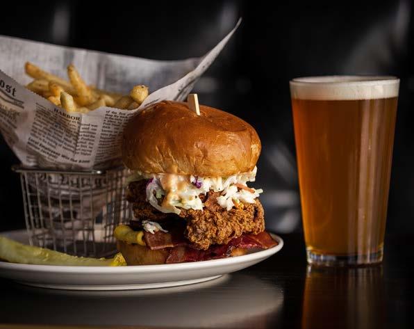 Southern-style fried chicken, spicy aioli, house made zucchini pickles, bacon and coleslaw on a pub bun