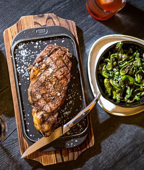 21-day aged, full bodied with a rich beefy flavor New York Strip steak grilled to order and topped with a chimichurri compound butter and served with garlic mashed potatoes and seasonal vegetables