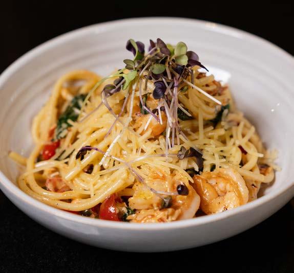 Comfort in a bowl — linguini bathed in a creamy tomato vodka sauce with savory Italian sausage, smoky pancetta, caramelized onions and garlic. Simmered slow and finished with a touch of spice and Parmesan. Served with toasted garlic ciabatta bread