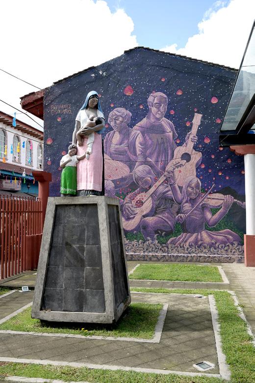 En las calles de Uruapan, a 35 km de Paracho, una pintura mural como es tradicional en México.