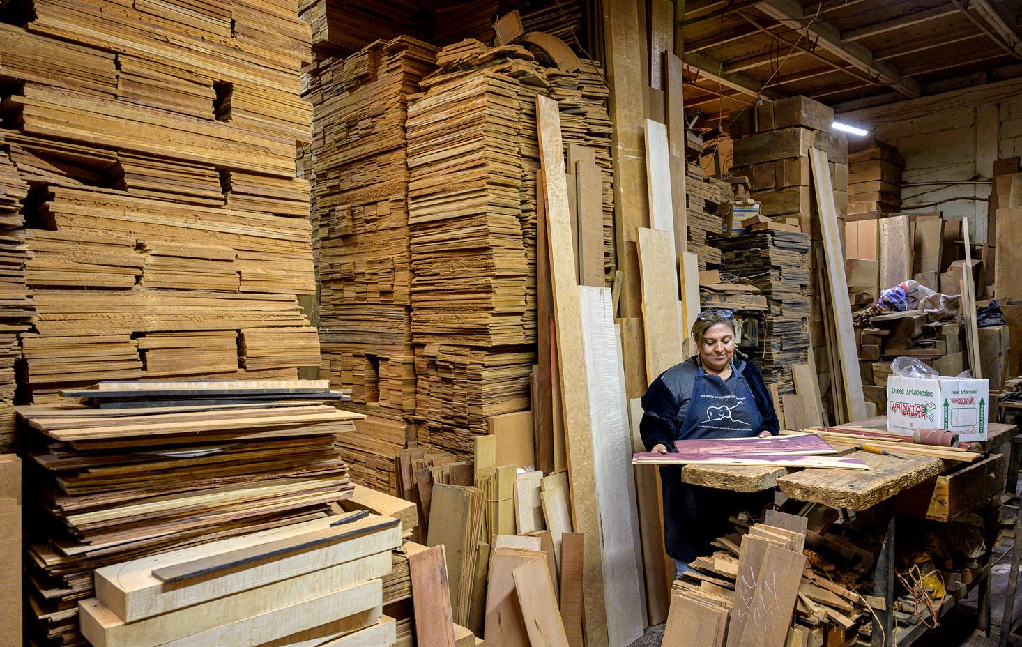 El stock de madera de Materiales Mendoza, una empresa dirigida por Rosa Elena.