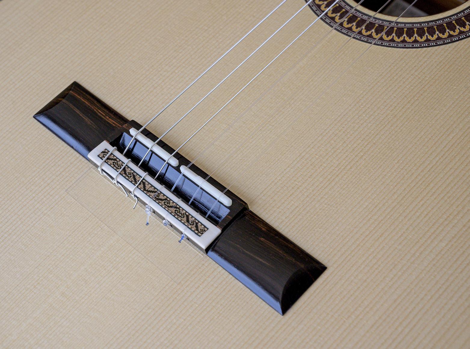 F. Z. – Hago la cejilla en dos partes para optimi zar el contacto del hueso con el puente y para poder calibrar la altura de las cuerdas de manera independiente los graves de los agudos.