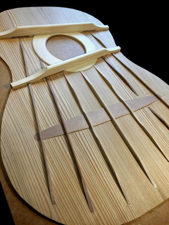 B. L. – My early bracing was in the Torres style, using seven struts, albeit with reinforcement under the bridge. I later added a second harmonic bar, slightly sloped; then I re-