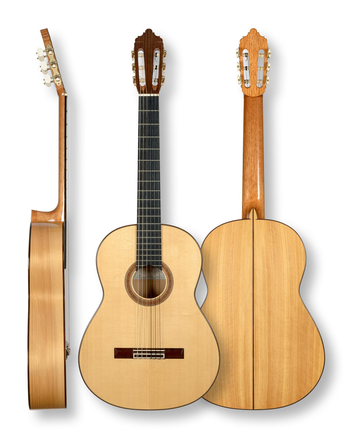 He makes flamenco guitars with tops of either spruce or cedar.