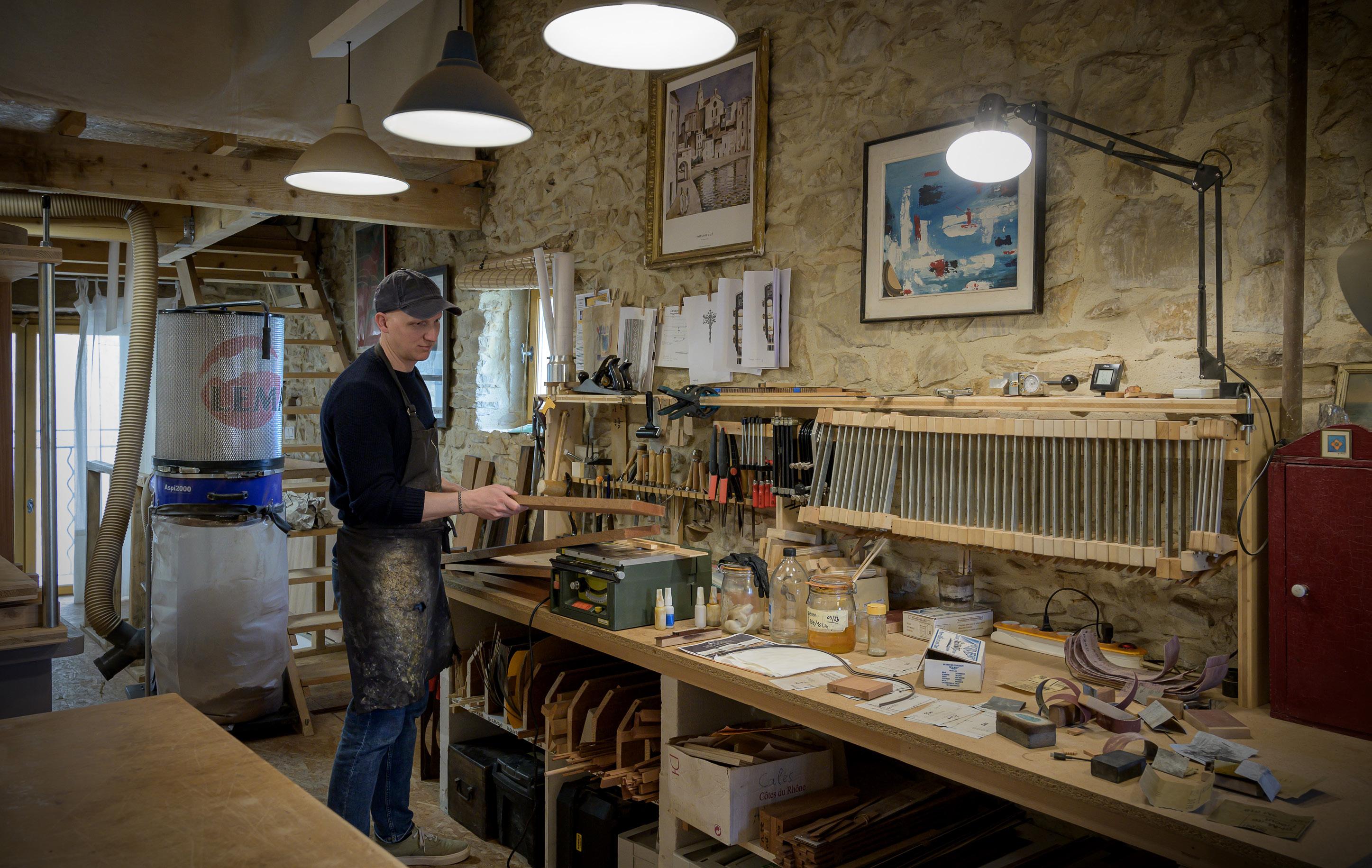 Much like the journeymen of yesteryear, who apprenticed by travelling workshop to workshop and country to country, PierreAlexandre studied lutherie in England, then in Italy, before finally settling in the area where he was born in France.